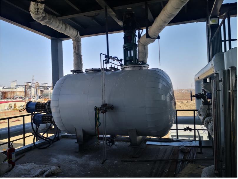 熔鹽槽是儲存熱能的設備,工作溫度420度,為此,熔鹽槽所選材質應滿足溫度的要求。熔鹽槽材質為Q345R合金鋼 ,板材厚度10mm, 管材為20#鋼GB3087鍋爐鋼管,熔鹽槽制造按相關標準要求執行。