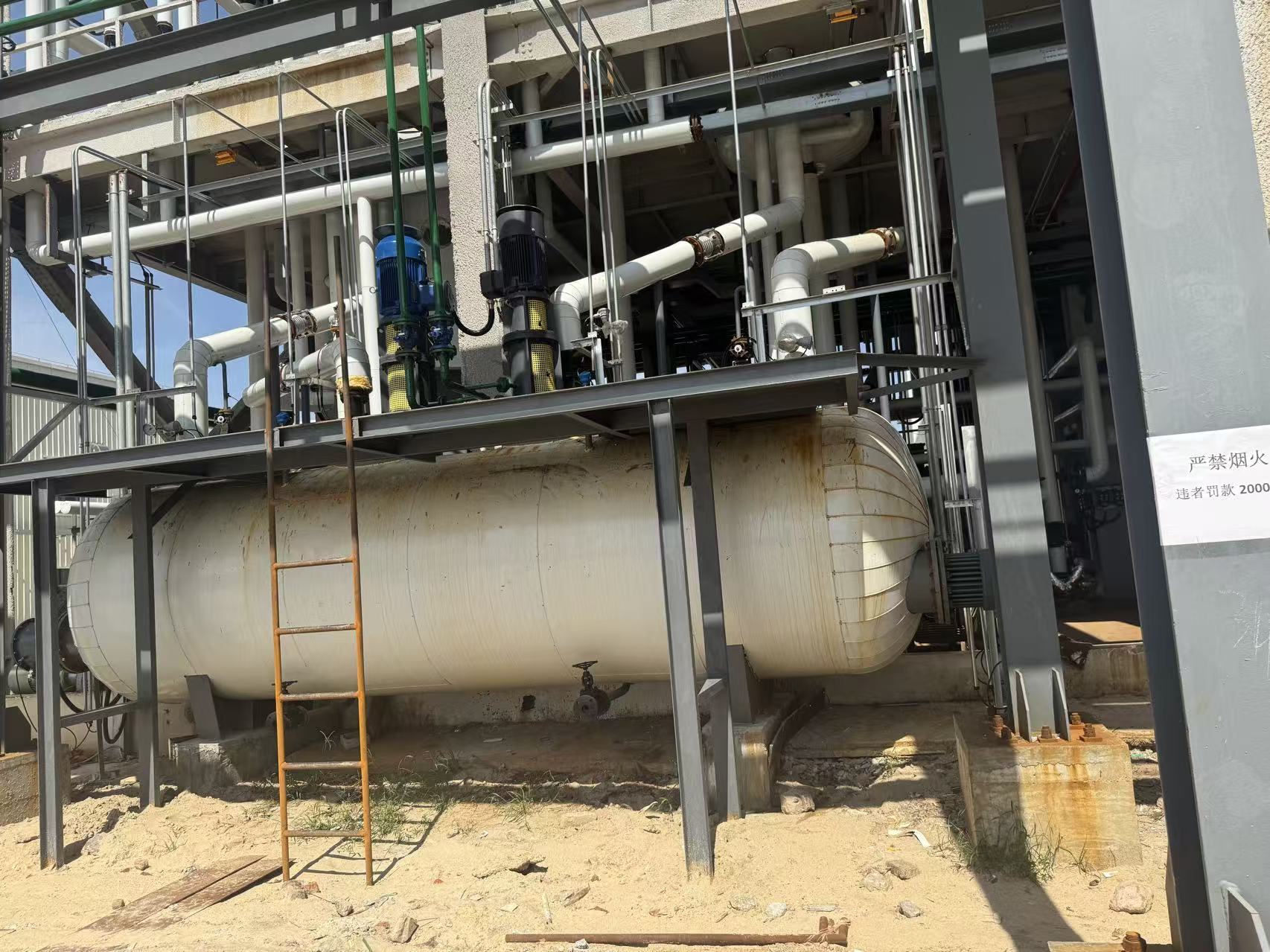 ②熔鹽槽是儲(chǔ)存熱能的設(shè)備,溫度高達(dá)400-550度,為此,熔鹽槽所選材質(zhì)應(yīng)滿足溫度的要求。熔鹽槽材質(zhì)為合金鋼,Q345R ,板材厚度10mm, 管材:12Cr1MoVG,GB5310.電加熱器接口為法蘭。